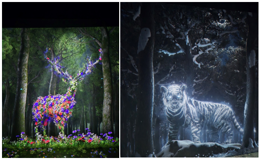 태백의 설경, 동해의 파도, 바람, 숲을 표현한 미디어아트가 전시되어 있어서