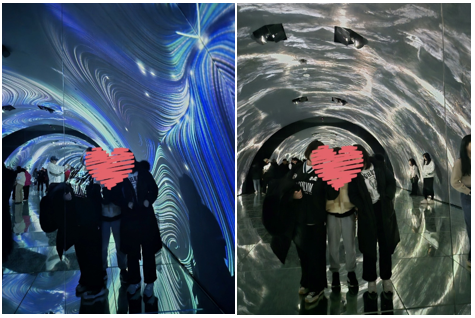 입구에 들어서는 순간부터 빛, 영상, 음악이 한데 어우러진 감각적인 세계가 펼쳐집니다.
