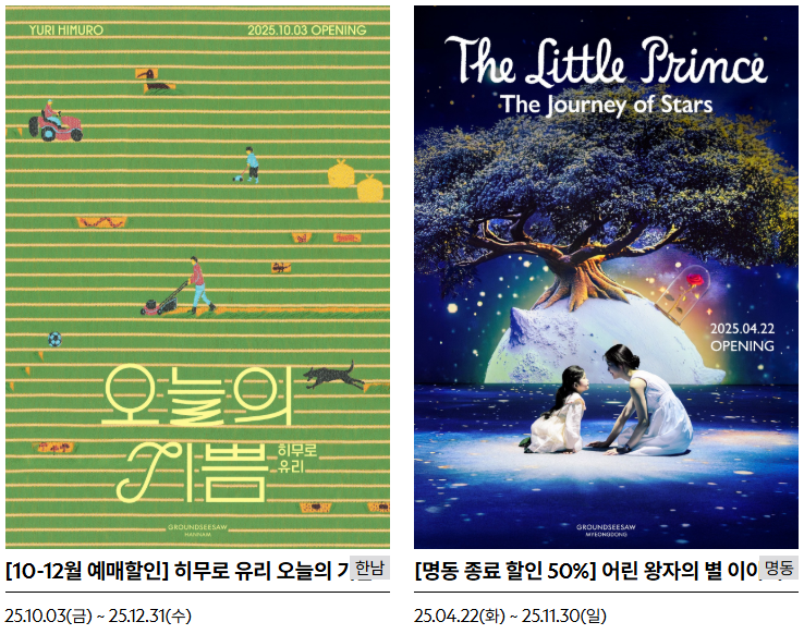 홈페이지 확인한 아래의 전시정보를 알려드립니다. 현재는 성수점 전시는 안보이네요. 다른 지역들의 전시도 재미있을거 같아요.