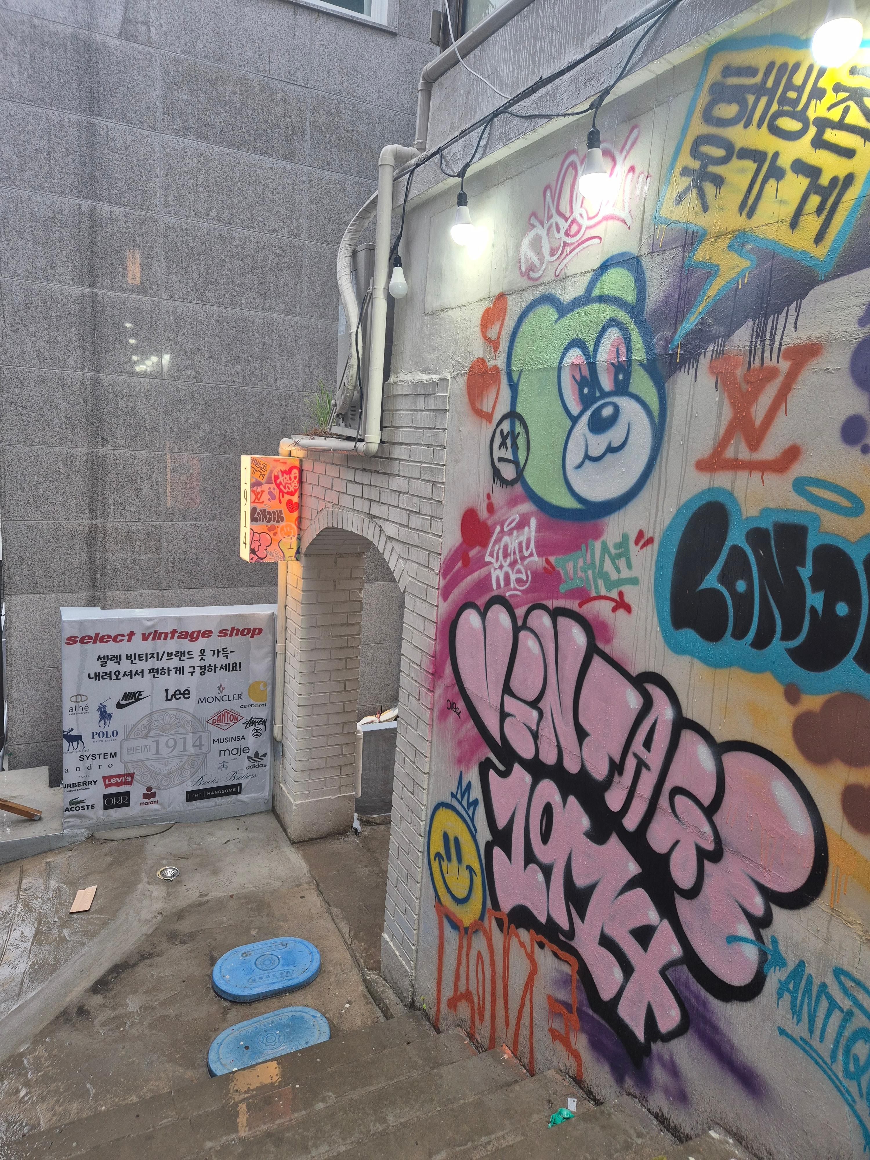 해방촌 거리를 거닐 때 가장 강하게 느낀 감정은 바로 **'과거의 어느 시점에 와있다'**는 느낌이었습니다. 오래된 건물과 좁은 골목길이 만들어내는 특유의 분위기, 그리고 곳곳에 정감 있게 그려진 벽화들이 그 분위기를 더욱 짙게 만들어줬죠.