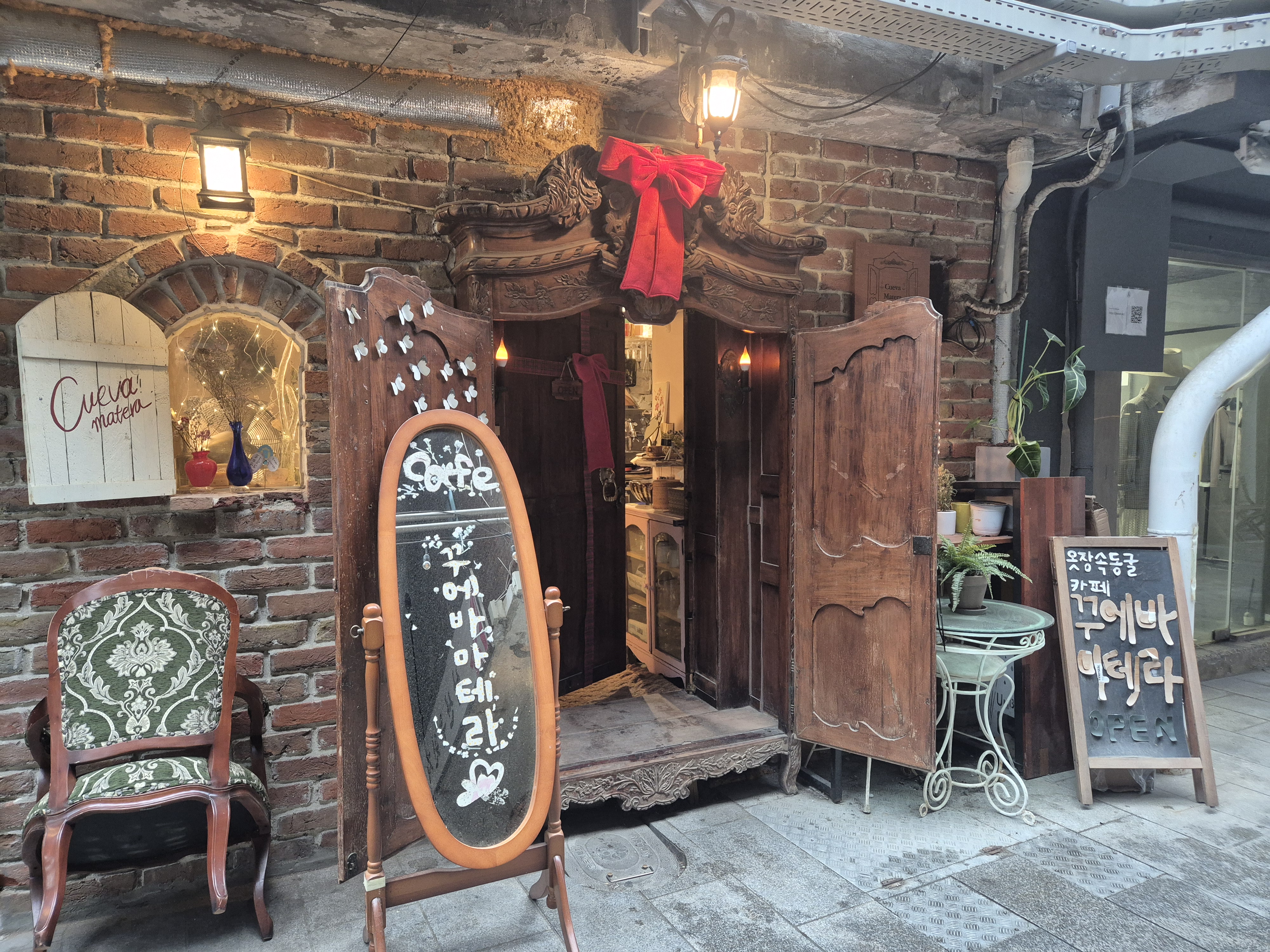 신흥시장은 크지 않지만, 그 안에 들어서면 가게마다 풍기는 이색적인 분위기가 눈과 마음을 신비롭게 만들었습니다. 낡은 상가 건물 안에 힙한 카페와 감각적인 펍, 독특한 소품샵들이 공존하는 모습 자체가 하나의 예술 작품 같았어요. 마치 시간이 멈춘 듯한 낡은 공간에 현재의 트렌드가 불시착한 느낌이랄까요?