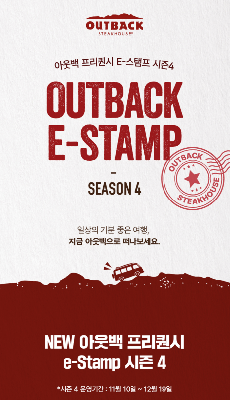 아웃백이 고객에게 감사의 마음을 담아 ‘프리퀀시 E-스탬프 시즌4’ 이벤트를 진행한다고 해요.