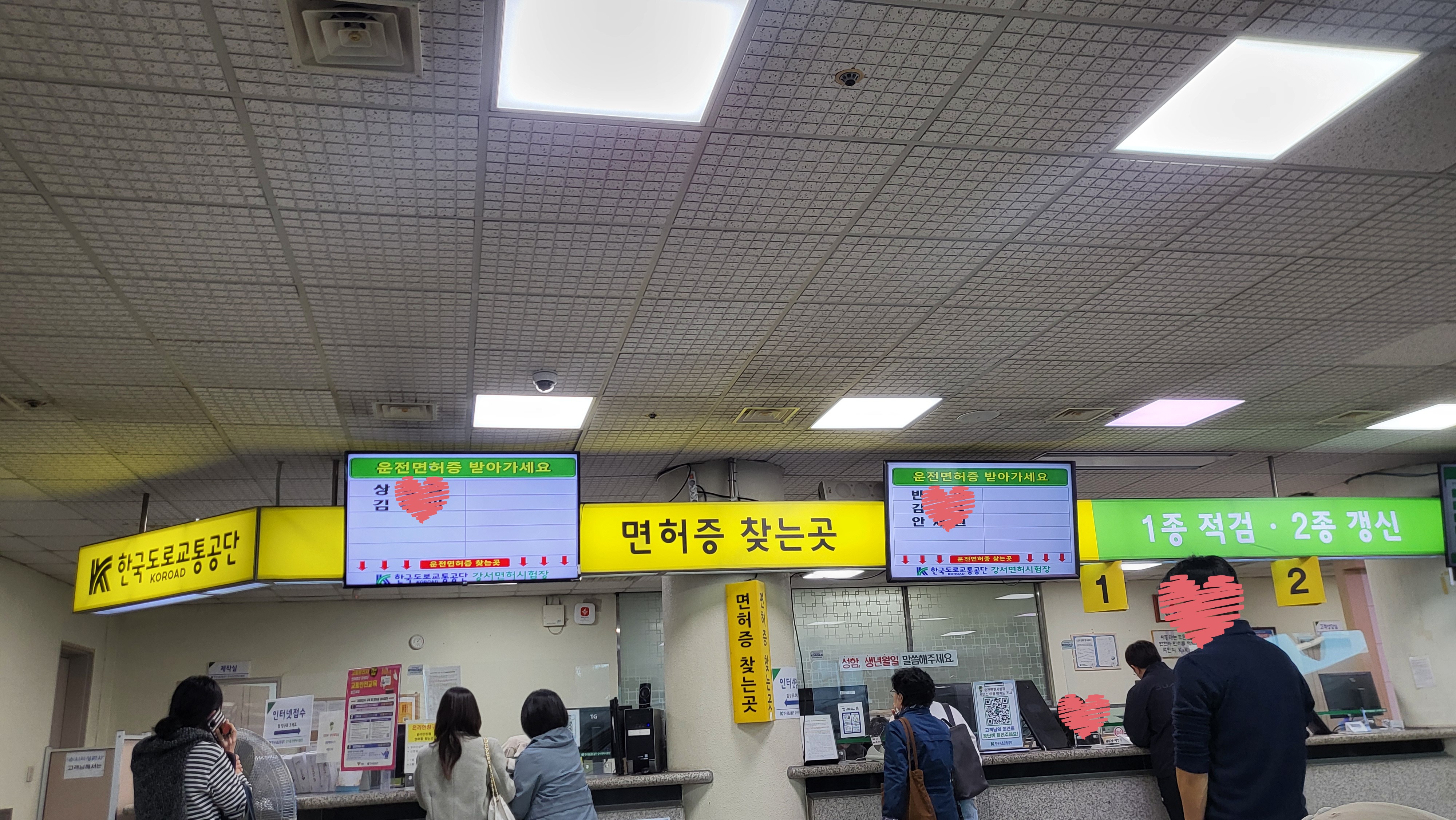 전광판에 제 이름이 뜨자마자 달려가 신분증을 받고, 기존 면허증을 반납하면 끝!