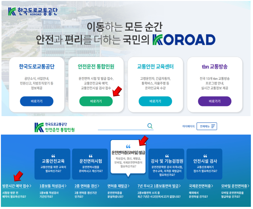 - 한국도로교통공단 '안전운전 통합민원'에서 방문 예약을 하고 가세요.