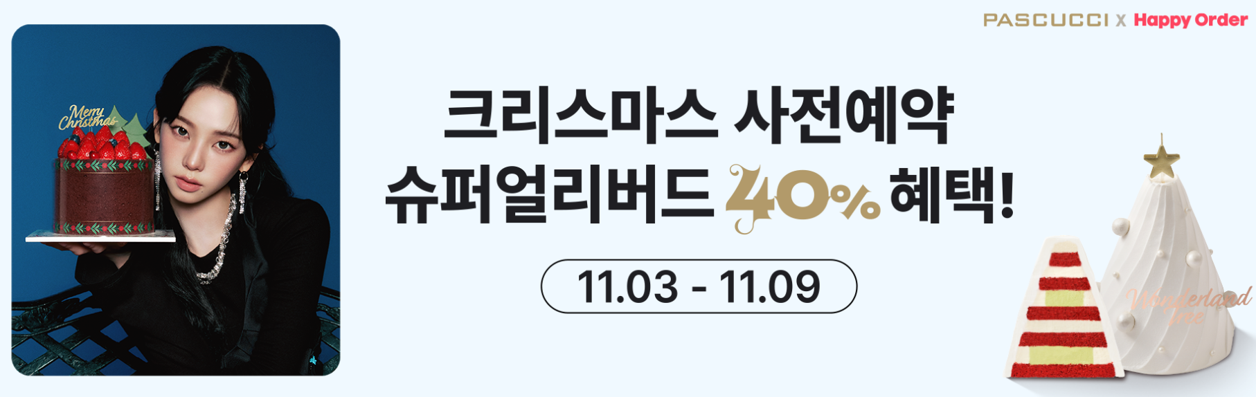 | 슈퍼 얼리버드 | 2025년 11월 3일 ~ 11월 9일 | 40% 혜택가 | 크리스마스 홀케이크 6종 | 해피오더 앱 |