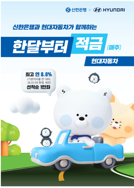 2. 신한은행 ‘한 달부터 적금X현대자동차’ – 최고 연 8.8% (차량 구매 연계형)