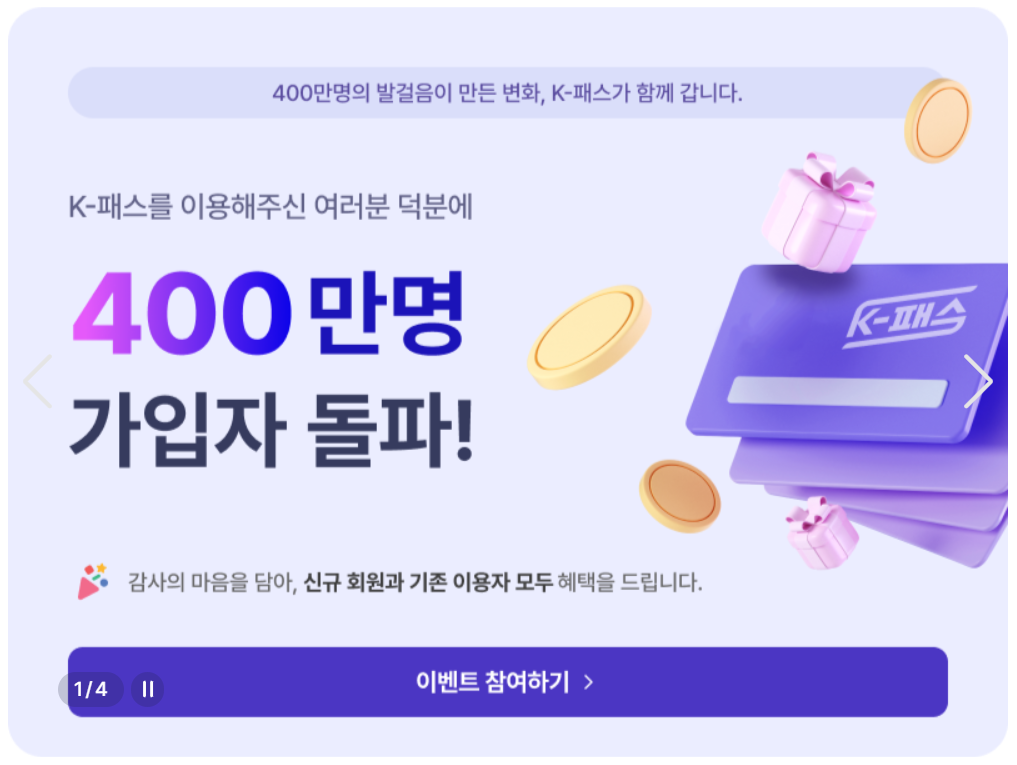 지난해 5월 출시된 이후 국민 교통비 절감의 핵심으로 자리 잡은 'K-패스'가 1년 5개월 만에 이용자 수 400만 명을 돌파하며 명실상부한 대한민국 대표 교통 카드로 자리매김했습니다.
