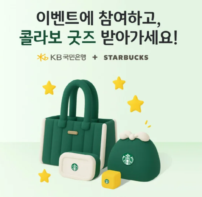 KB국민은행은 고객들에게 특별한 경험을 제공하기 위해 스타벅스와 협업하여 제작한 한정판 굿즈를 증정하는 이벤트를 진행합니다.