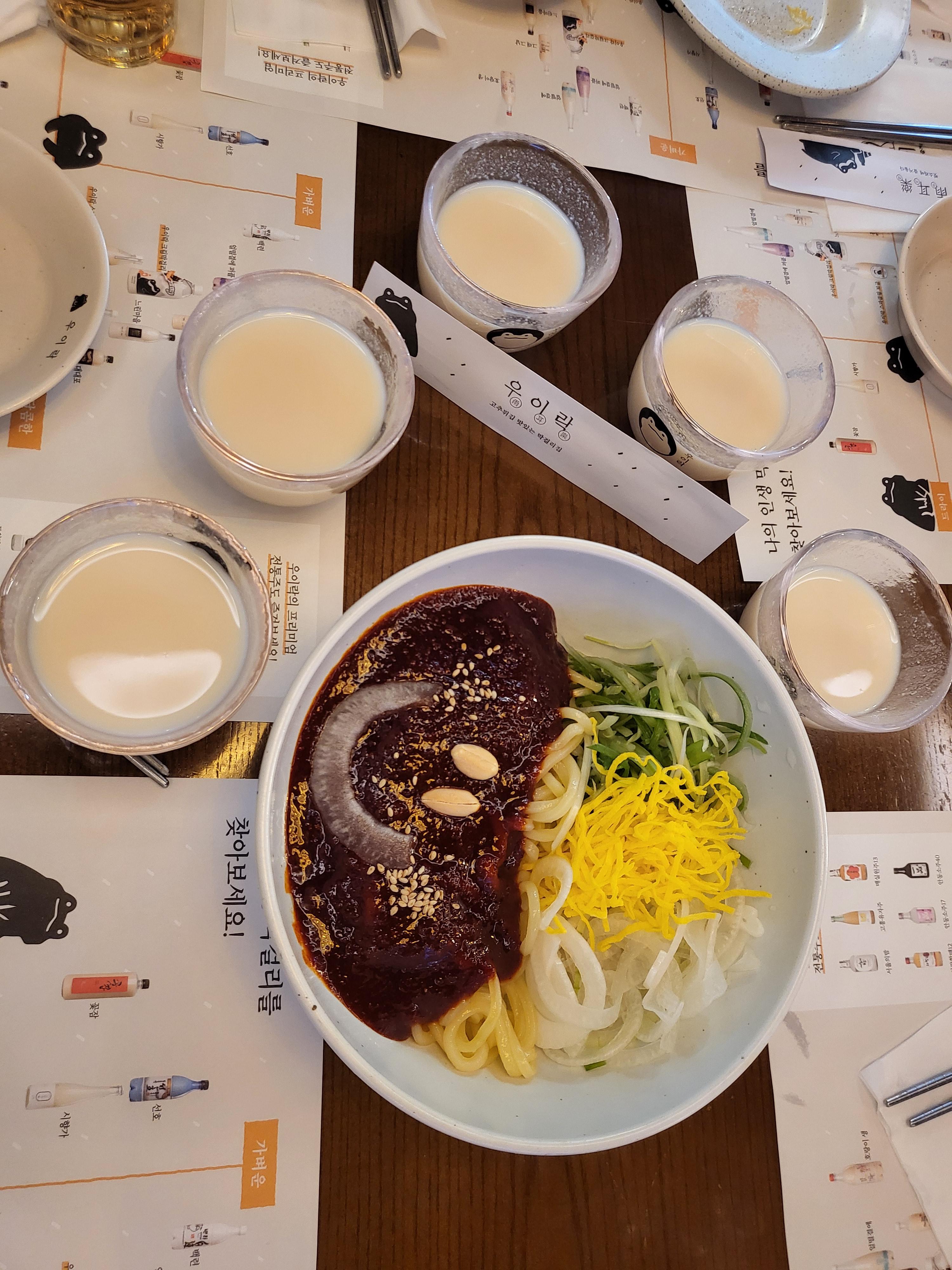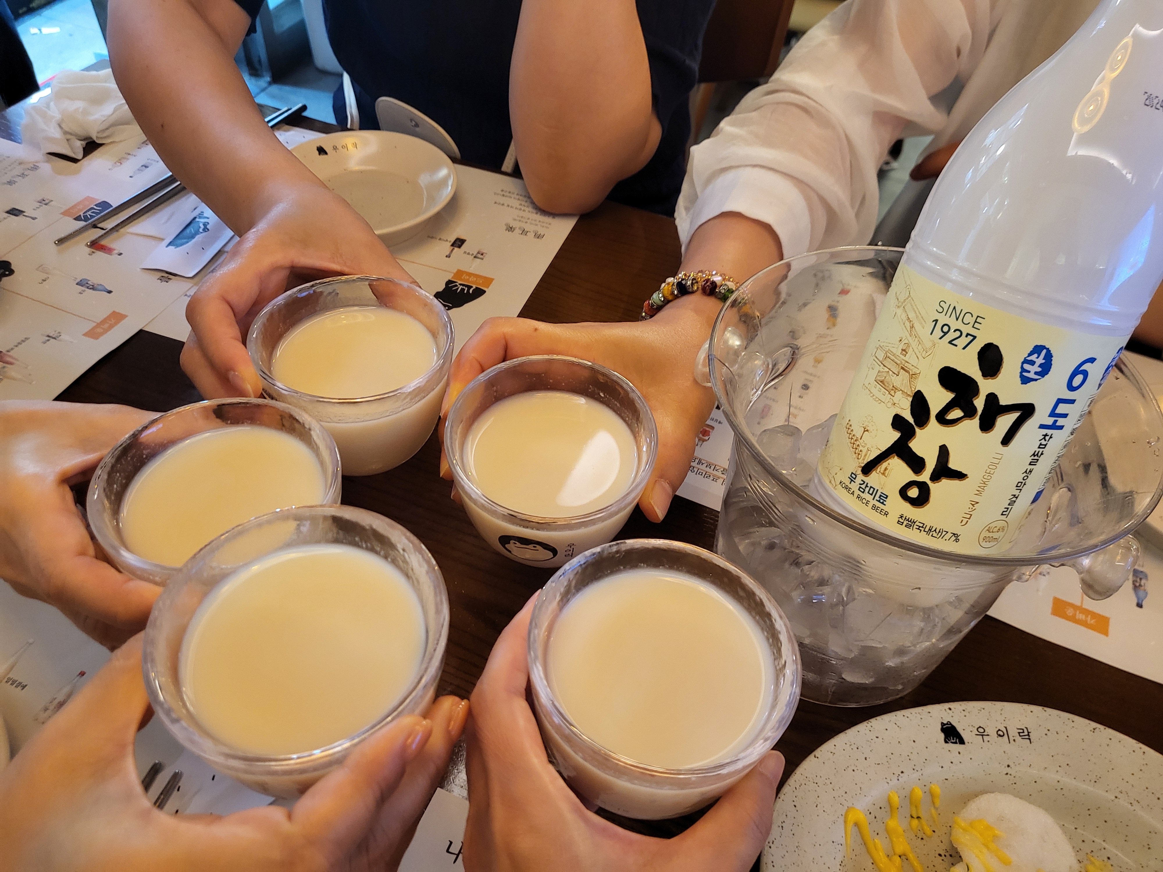 - 독특한 경험: 우이락은 30여 종이 넘는 독특한 전국 막걸리를 맛볼 수 있는 것으로도 유명합니다. 저희는 그중 **'해장6도'**를 주문했어요. 평소 먹던 막걸리와는 달리, 진득하면서도 깔끔한 맛이 튀김의 고소함과 완벽한 조화를 이루었습니다. 맛에 이끌려 감탄을 하며 연신 잔을 기울였답니다.